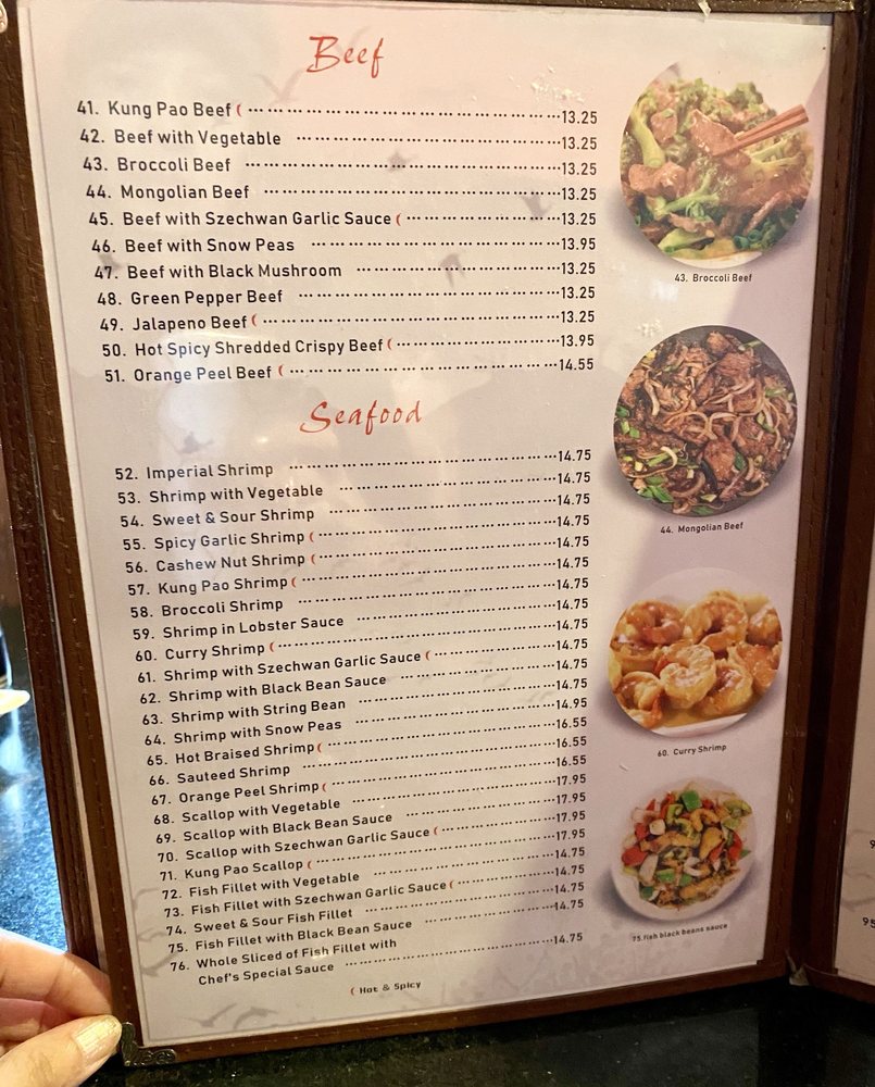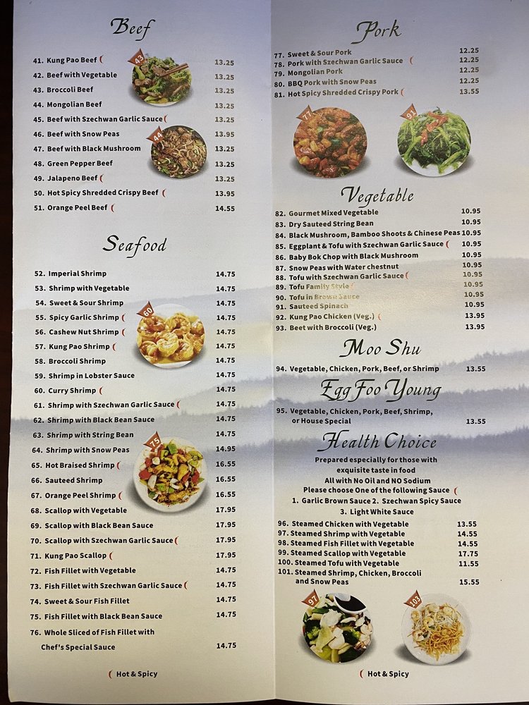 Slices of tender beef and scallops sauteed with broccoli, snow peas, mushrooms, carrots and baby corn in brown sauce.